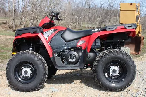 Polaris Sportsman 500 solenoid has 2 large terminals and 2 small terminals. A red wire connects one of the large terminals to the battery’s positive terminal. Another large terminal is connected to the starter motor. One of the small terminals is connected to an ignition switch, while the last terminal is for grounding.